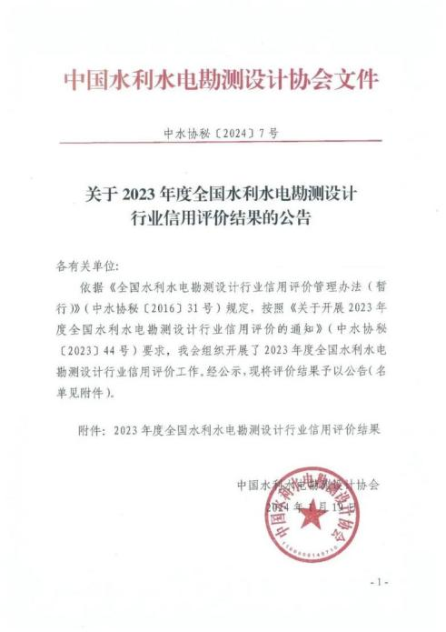 4項(xiàng)AAA,3項(xiàng)AAA+!我院在2023年度水利建設(shè)市場(chǎng)主體及全國(guó)水利水電勘測(cè)設(shè)計(jì)行業(yè)信用評(píng)價(jià)中再創(chuàng)佳績(jī)