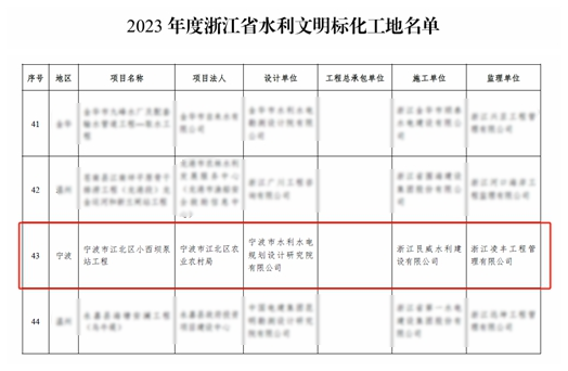 近日,經浙江省水利廳2023年度浙江省水利文明標化工地名單公布,我院承擔全過程工程咨詢的寧波市江北區(qū)小西壩泵站工程喜獲“浙江省文明標化工地”稱號,成為寧波市水利行業(yè)的標桿工程。