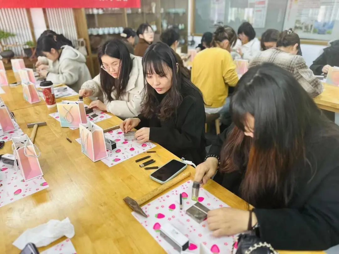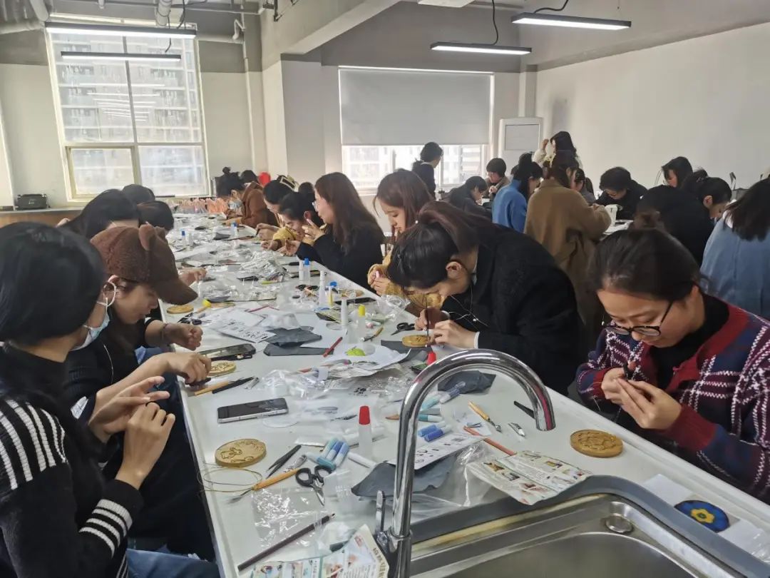 活動當天,女職工們按時到達活動教室,發(fā)揮巧思,施展妙手,或是“掐絲、剪絲、上砂、上膠”,或是“測量、造型、印刻、拋光”,或是“和面、打發(fā)、烘烤、裝點”,解鎖了一系列全新的體驗,收獲了節(jié)日的快樂和美好。