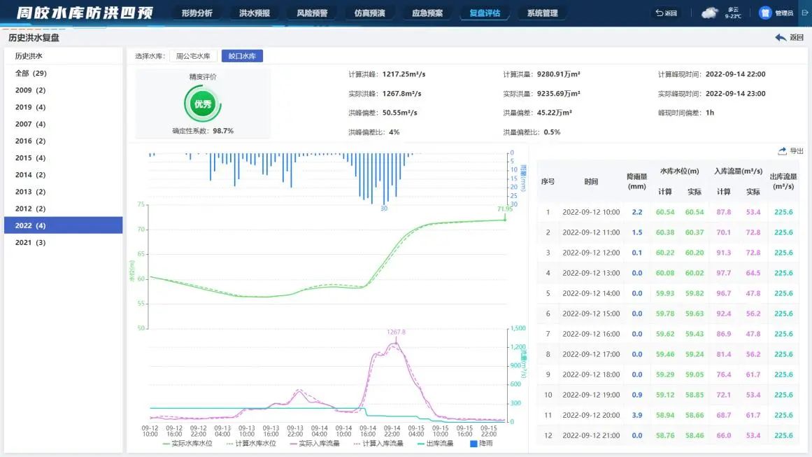 “梅花”臺(tái)風(fēng)期間,利用系統(tǒng)洪水預(yù)報(bào)功能實(shí)現(xiàn)精準(zhǔn)預(yù)報(bào),指導(dǎo)水庫預(yù)泄工作。